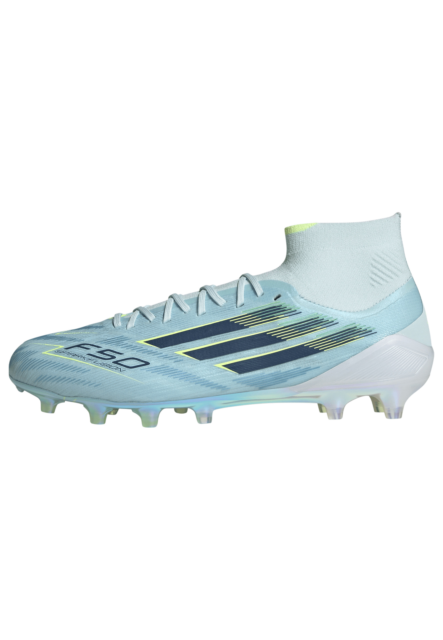 Der F50 Sparkfusion Elite Mid Cut Firm Ground/Artificial Ground Fußballschuh ist darauf ausgelegt, das Spiel zu verändern. Mit seinem Fokus auf Performance ist dieser Fußballschuh ideal, wenn du dich nicht scheust, an deine Grenzen zu gehen. Der mittelhohe Primeknit Schaft gewährleistet Halt und Komfort und wird durch das Fibertouch Obermaterial ergänzt, das dort Dämpfung bietet, wo es am wichtigsten ist. Hinzu kommt die Fusionsole Einlegesohle, die eine effektive Fußgewölbeunterstützung bietet, und ein vorgeformter Fersenbereich, die für einen bequemen Sitz sorgt. Die hochauflösende Sprintweb 3D-Textur bietet präzise Ballkontrolle, insbesondere bei schnellen Dribblings. Dank niedrigem Rist, schmaler Ferse und großzügigem Zehenbereich durch Fusionlast genießt du eine optimierte Passform, während die Sprintframe Fusion Technologie die nötige Stabilität im Mittelfuß liefert – ideal für blitzschnelle Richtungswechsel. Der Fußballschuh ist außerdem mit halbkonischen Stollen ausgestattet, die das Drehen und Abstoßen erleichtern, und ist damit eine zuverlässige Wahl für Natur- und Kunstrasenplätze. adidas setzt mit diesen Fußballschuhen mit legendärem Branding weiterhin auf Innovation. Jedes Mal, wenn du das Spielfeld betrittst, kannst du auf die Qualität und Innovation von adidas vertrauen und deine beste Leistung abrufen.