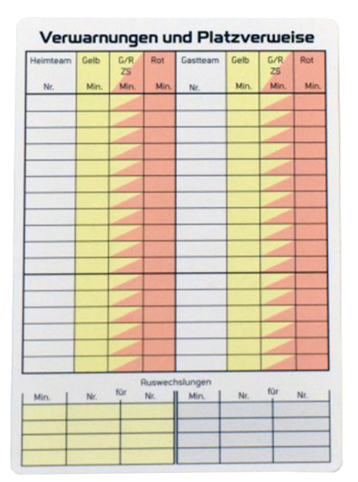 Spielnotizkarten für Fußballsport im 50er-Set für den Schiedsrichter. Die Spielnotizkarten Fußball sind beidseitig in deutscher Sprache bedruckt und ohne Unterlage sowie bei Nässe beschreibbar. Das Standardmaß von 8x12cm bietet ist handlich und kompakt, dank abgerundeter Kanten sind die Karten perfekt an die Anforderungen von Schiedsrichtern angepasst. Das Material ist wasserbeständig und auch bei Nässe leicht zu beschreiben. Produktdetails: 50er Pack Maße: 8x12 cm beidseitig bedruckt Sprache: deutsch wasserbeständig stabil leicht beschreibbar abgerundete Kanten Version: Fußball
